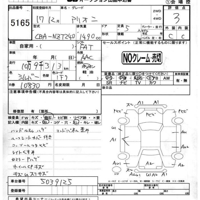TOYOTA ALLION - лот 5165