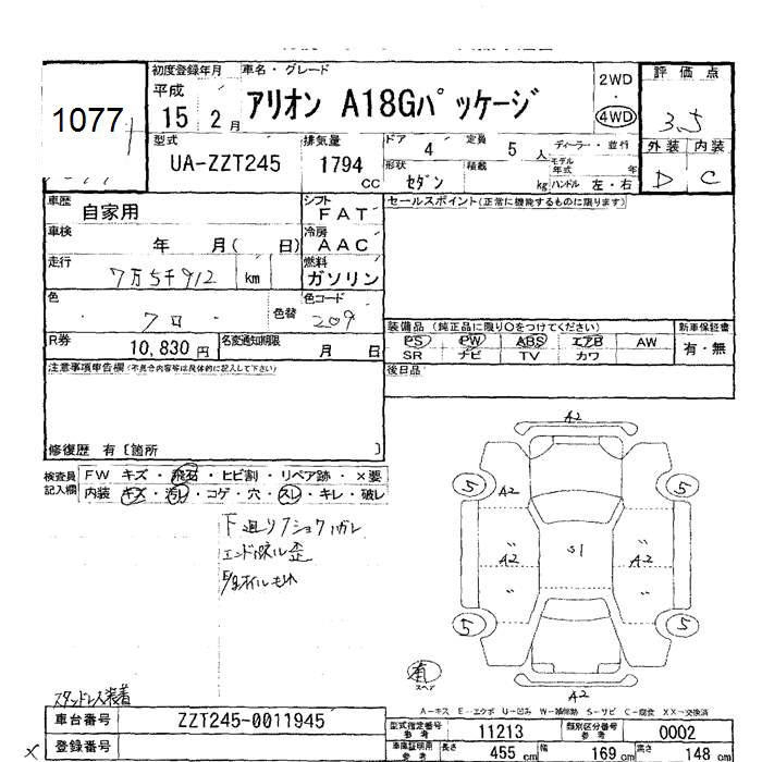 TOYOTA ALLION - лот 1077