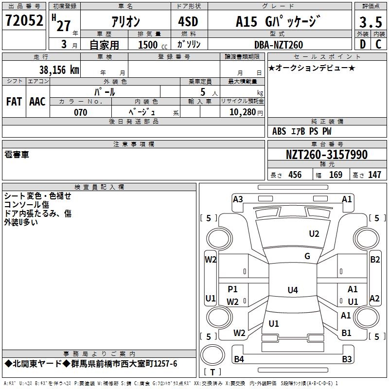 TOYOTA ALLION - лот 72052