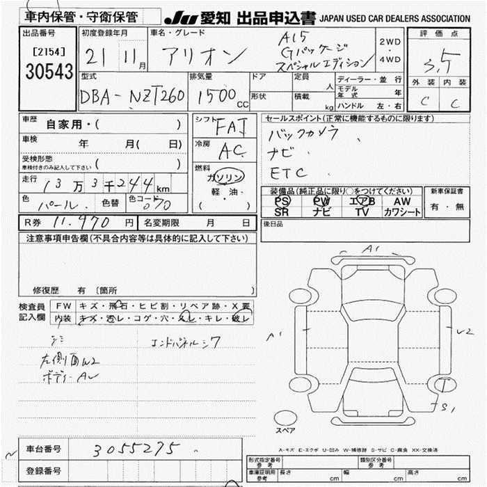 TOYOTA ALLION - лот 30543