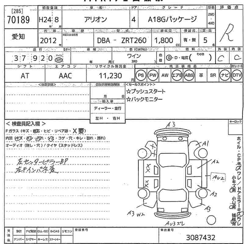 TOYOTA ALLION - лот 70189