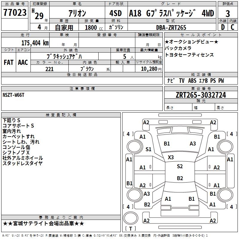 TOYOTA ALLION - лот 77023