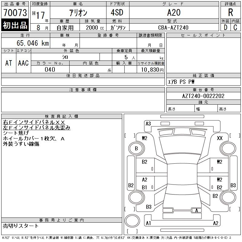 TOYOTA ALLION - лот 70073