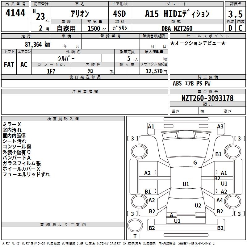 TOYOTA ALLION - лот 4144