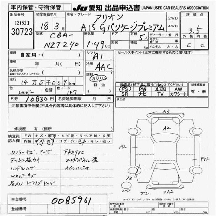 TOYOTA ALLION - лот 30723