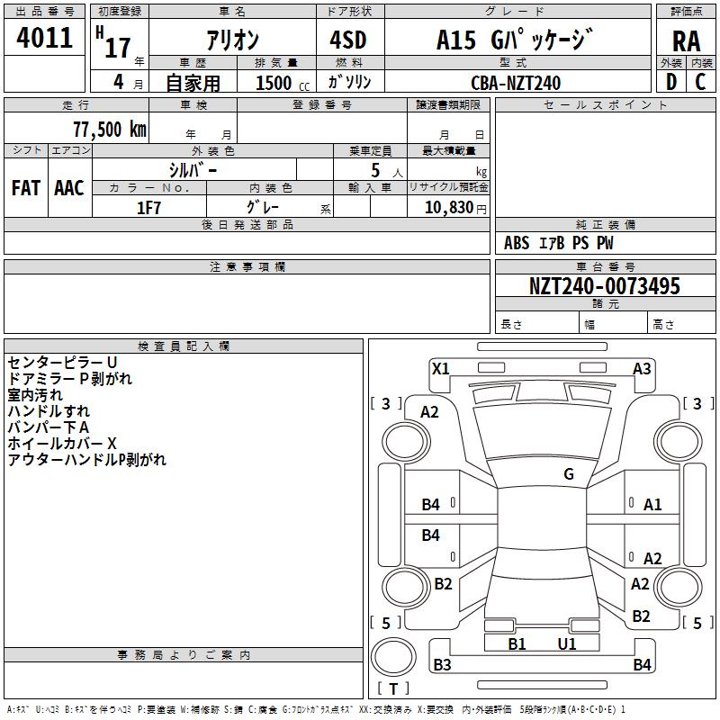TOYOTA ALLION - лот 4011
