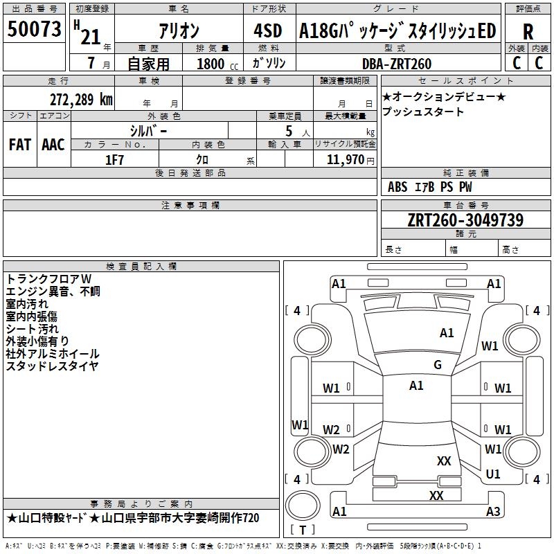 TOYOTA ALLION - лот 50073