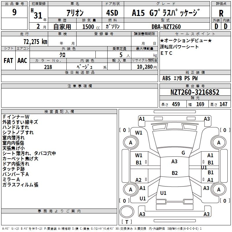 TOYOTA ALLION - лот 9