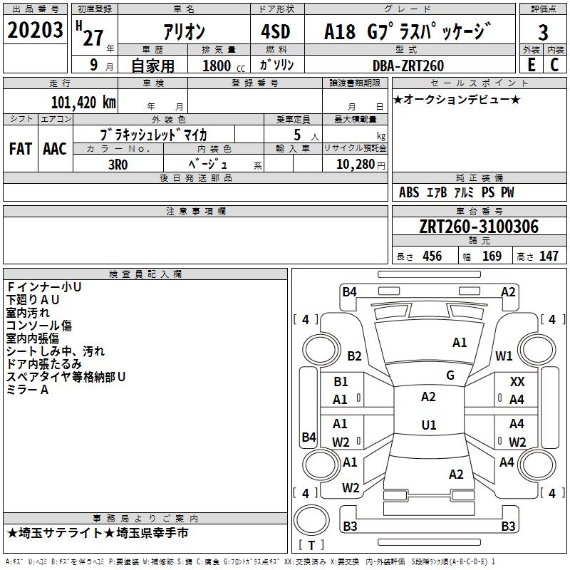 TOYOTA ALLION - лот 20203