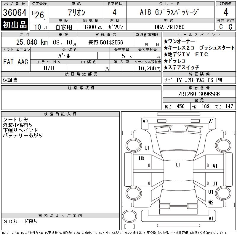 TOYOTA ALLION - лот 36064