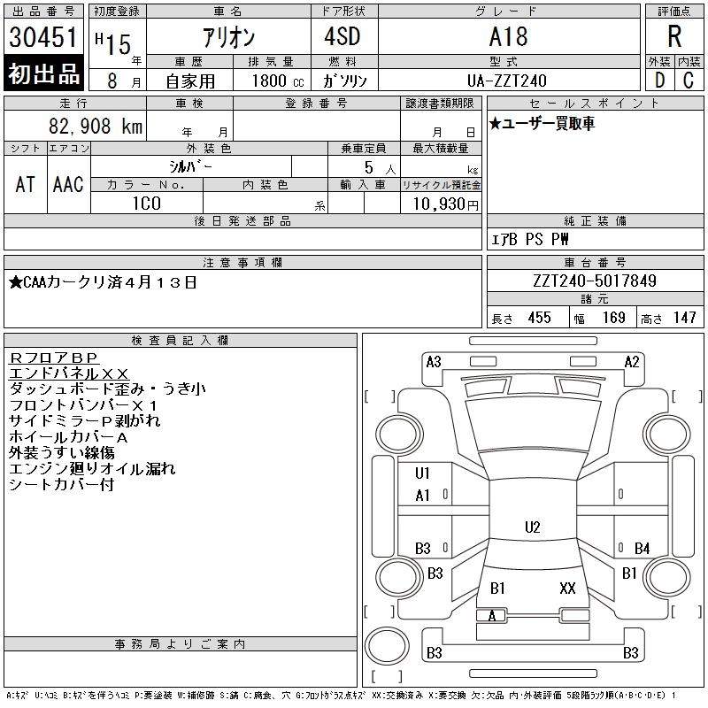 TOYOTA ALLION - лот 30451
