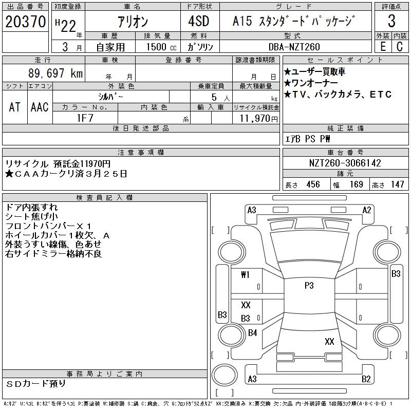 TOYOTA ALLION - лот 20370