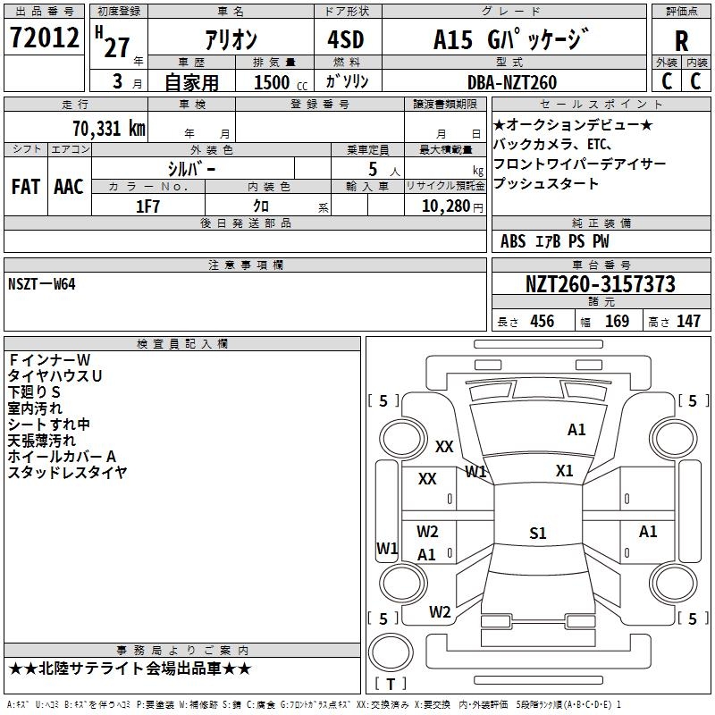 TOYOTA ALLION - лот 72012