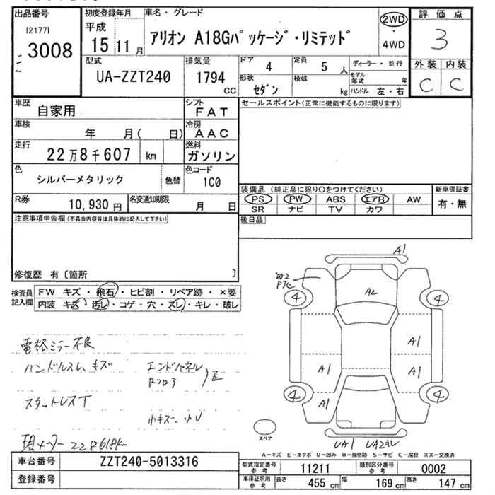 TOYOTA ALLION - лот 3008