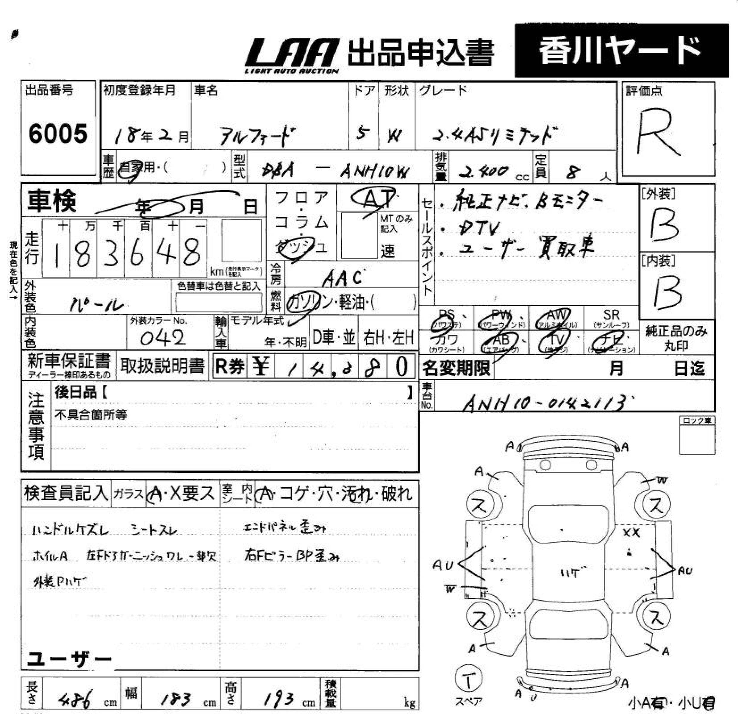 TOYOTA ALPHARD G 2.4AS LIMITED - лот 6005