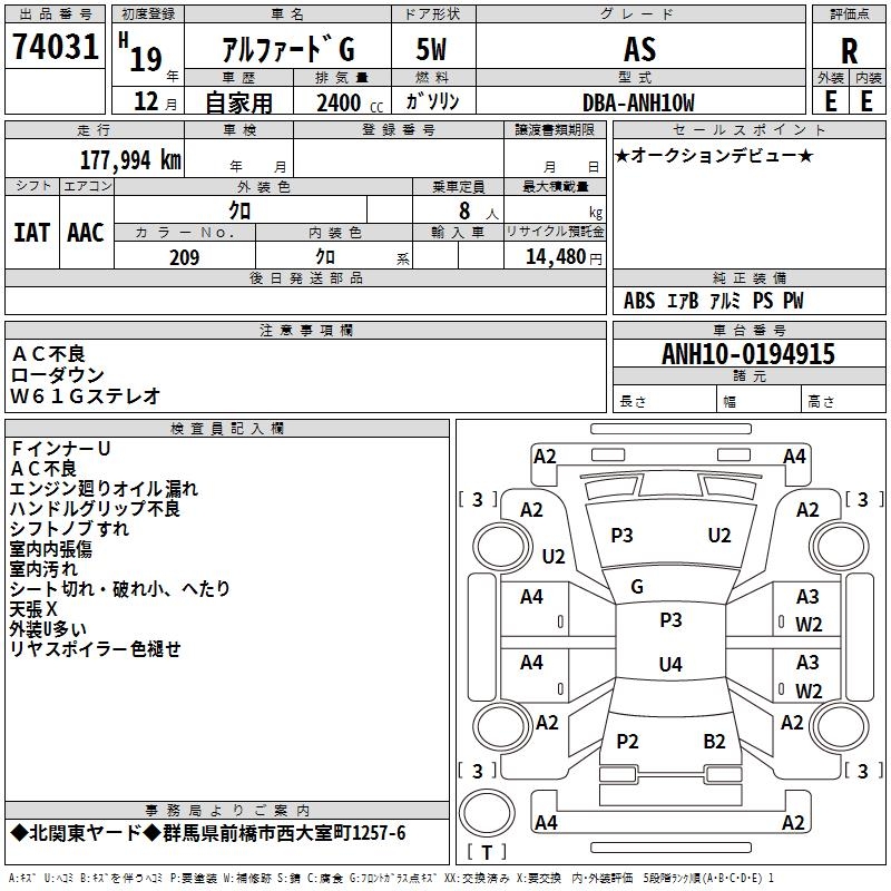 TOYOTA ALPHARD G AS - лот 74031