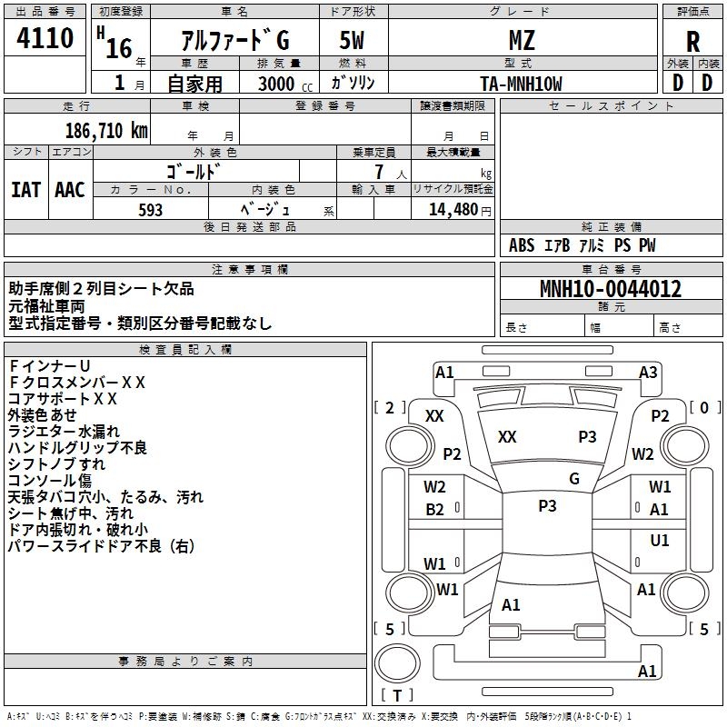 TOYOTA ALPHARD G MZ - лот 4110