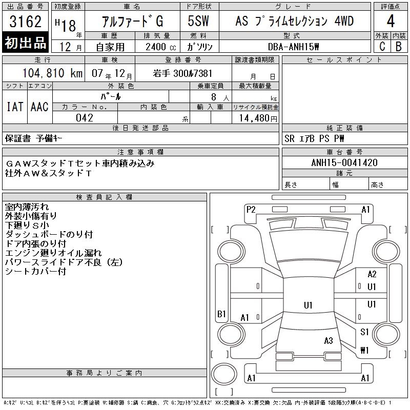 TOYOTA ALPHARD G AS PRIME SELECTION 4WD - лот 3162