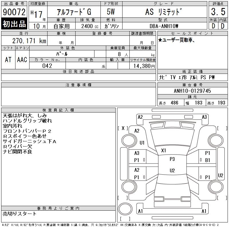 TOYOTA ALPHARD G AS LIMITED - лот 90072
