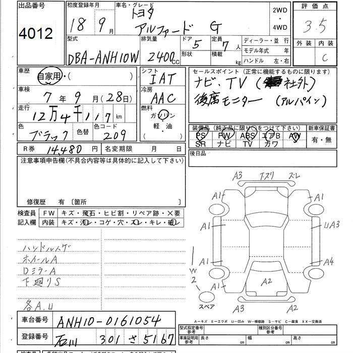 TOYOTA ALPHARD G - лот 4012