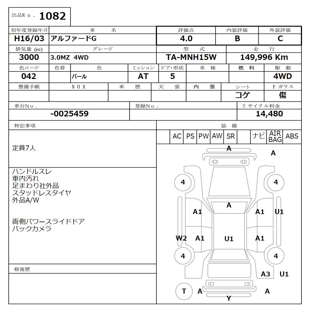 TOYOTA ALPHARD G 3.0MZ 4WD - лот 1082