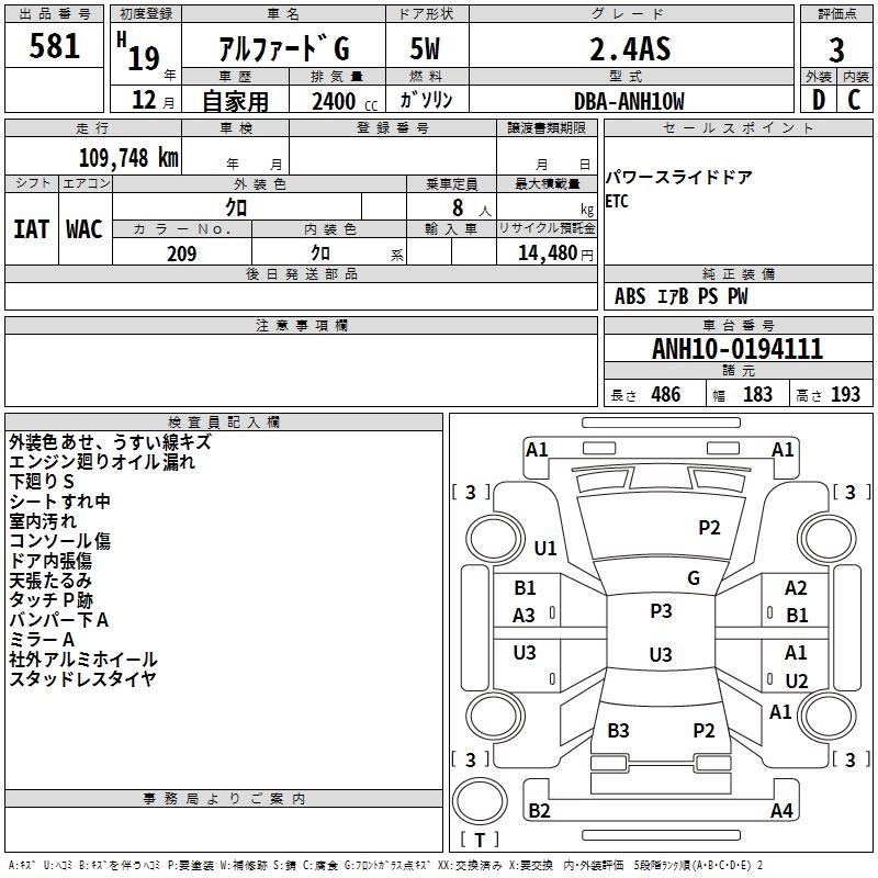TOYOTA ALPHARD G - лот 581