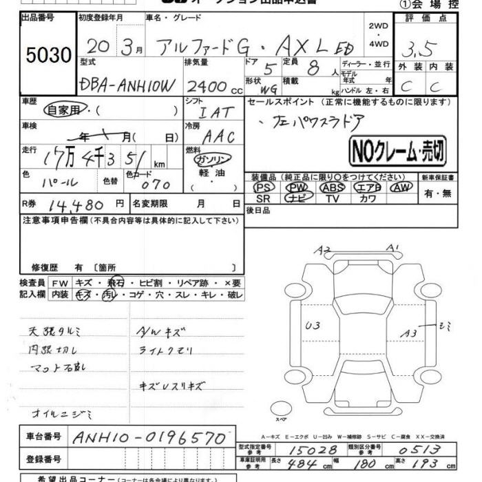 TOYOTA ALPHARD G - лот 5030