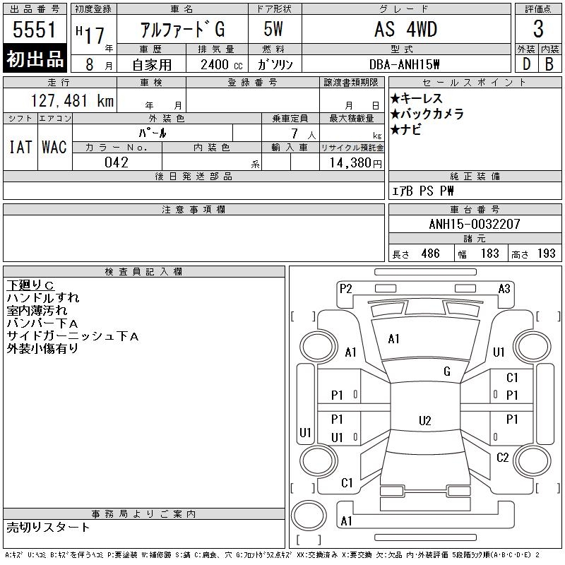 TOYOTA ALPHARD G AS 4WD - лот 5551
