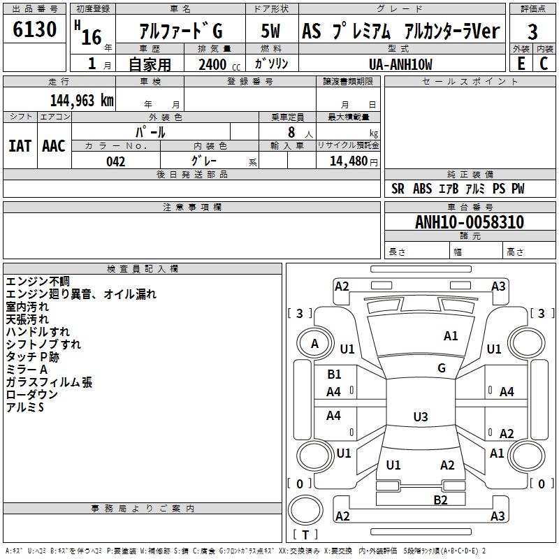 TOYOTA ALPHARD G AS PREMIUM ALCANTARA VER - лот 6130