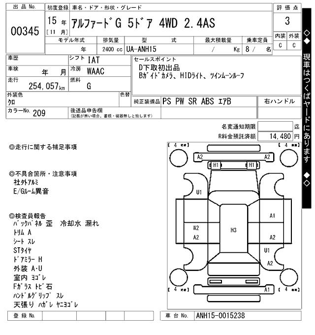 TOYOTA ALPHARD G 2.4AS - лот 345