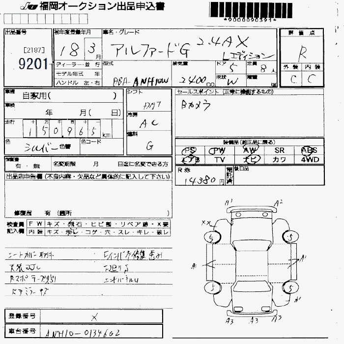 TOYOTA ALPHARD G AX L EDITION - лот 9201