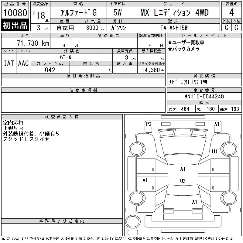TOYOTA ALPHARD G MX L EDITION 4WD - лот 10080