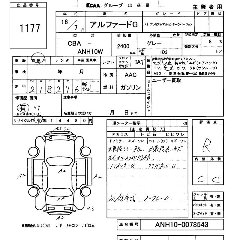 Все аукционы TOYOTA ALPHARD G