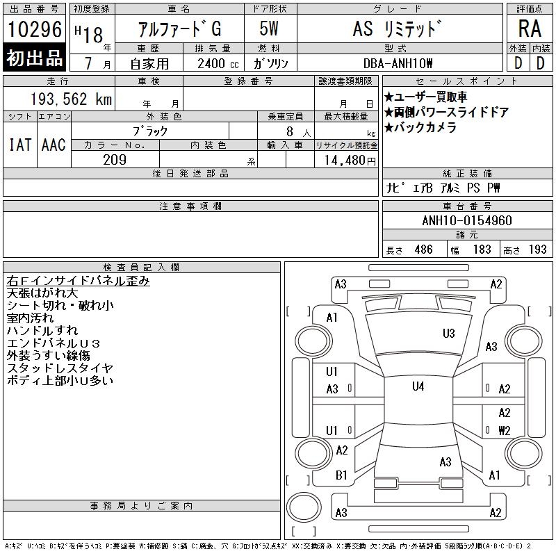 TOYOTA ALPHARD G AS LIMITED - лот 10296