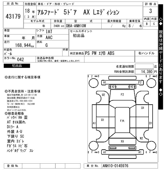 TOYOTA ALPHARD G AX L EDITION - лот 43179