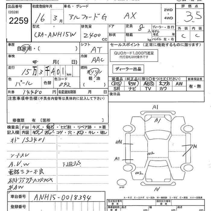 TOYOTA ALPHARD G AX - лот 2259