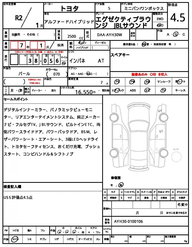 Все аукционы TOYOTA ALPHARD HYBRID