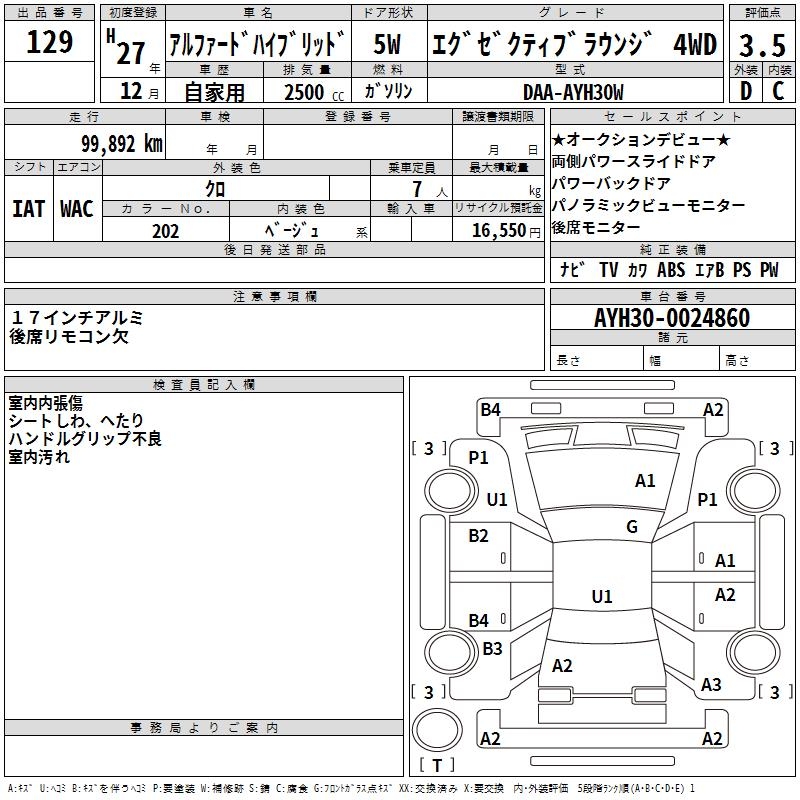 TOYOTA ALPHARD HYBRID EXECUTIVE LOUNGE 4WD - лот 129