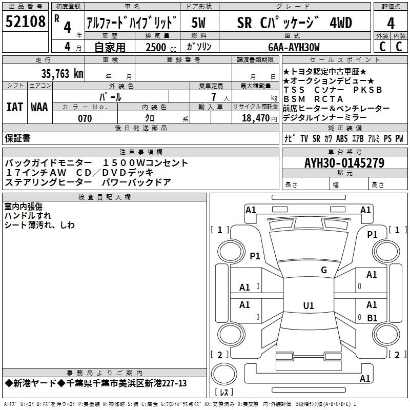 TOYOTA ALPHARD HYBRID SR C PACKAGE 4WD - лот 52108