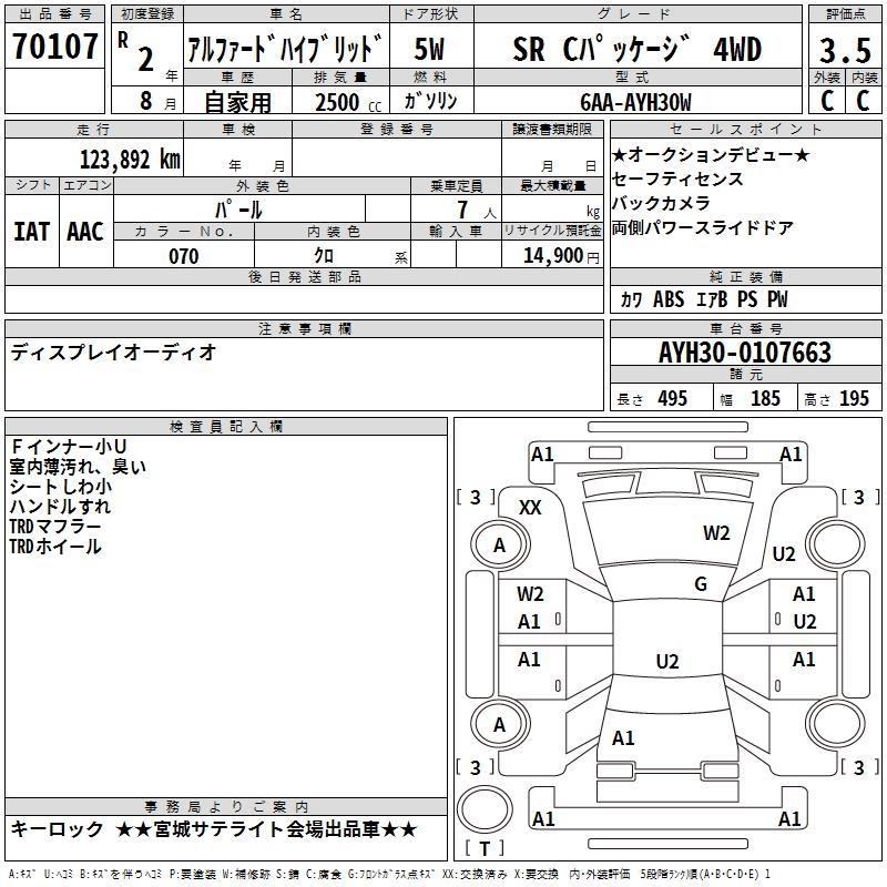TOYOTA ALPHARD HYBRID SR C PACKAGE 4WD - лот 70107