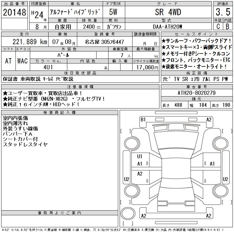 TOYOTA ALPHARD HYBRID SR 4WD - лот 20148