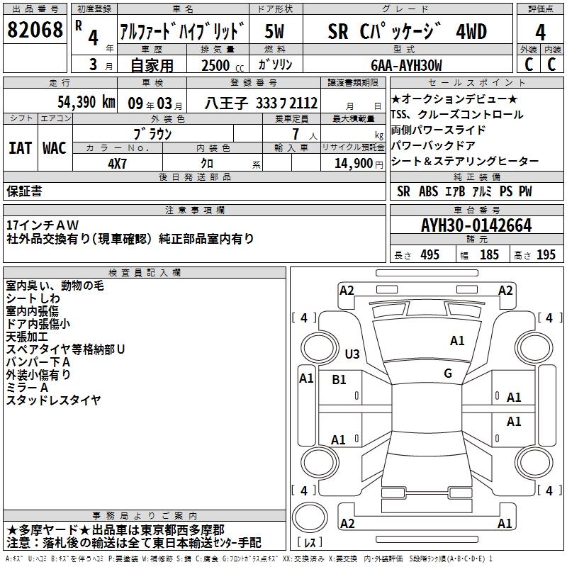 TOYOTA ALPHARD HYBRID SR C PACKAGE 4WD - лот 82068