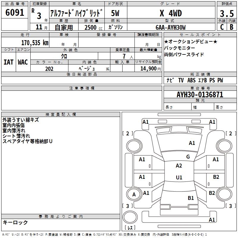 TOYOTA ALPHARD HYBRID X 4WD - лот 6091