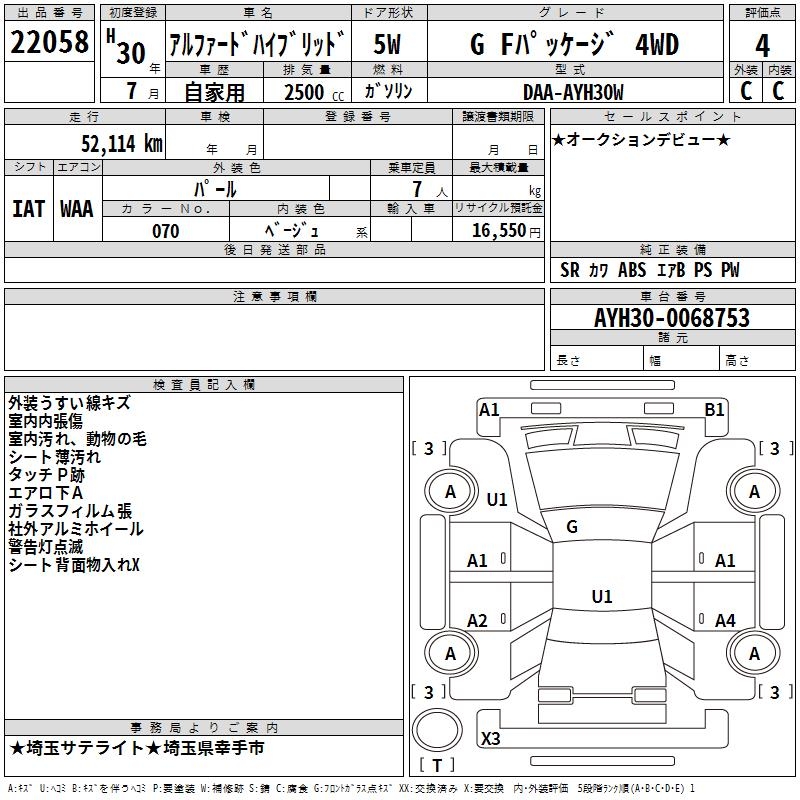 TOYOTA ALPHARD HYBRID G F PACKAGE 4WD - лот 22058