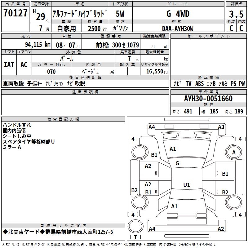 TOYOTA ALPHARD HYBRID G 4WD - лот 70127
