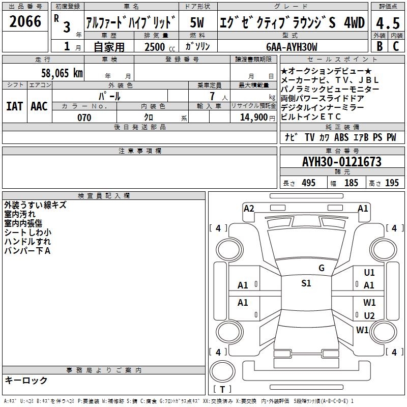 TOYOTA ALPHARD HYBRID EXECUTIVE LOUNGE S 4WD - лот 2066