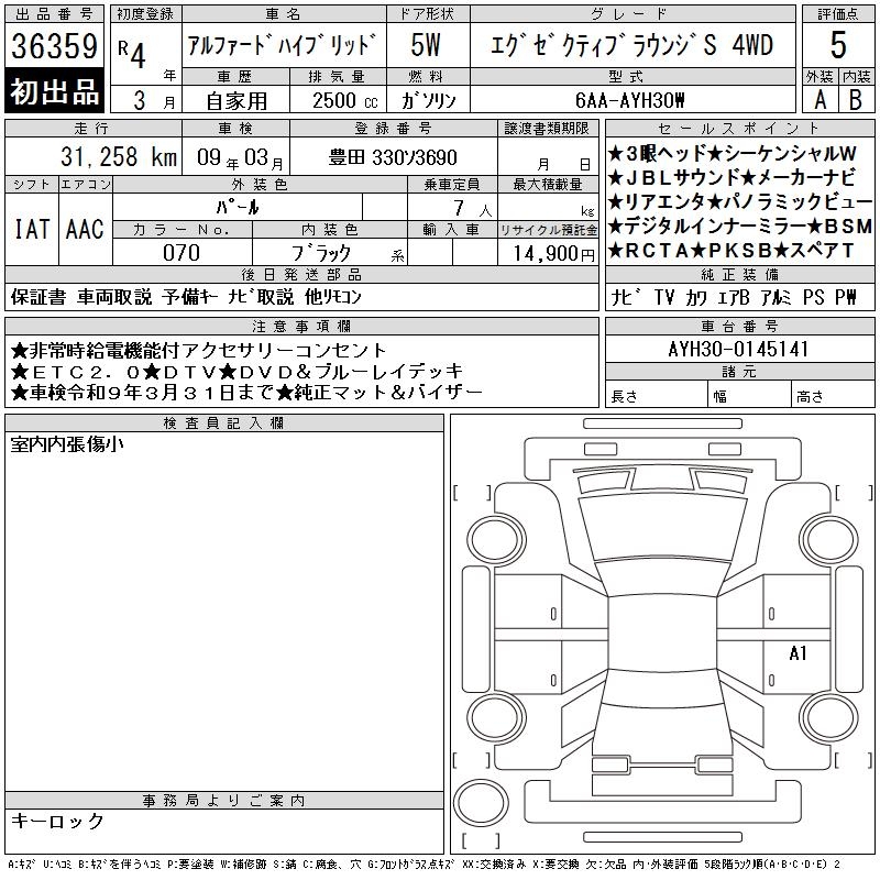 TOYOTA ALPHARD HYBRID EXECUTIVE LOUNGE S 4WD - лот 36359