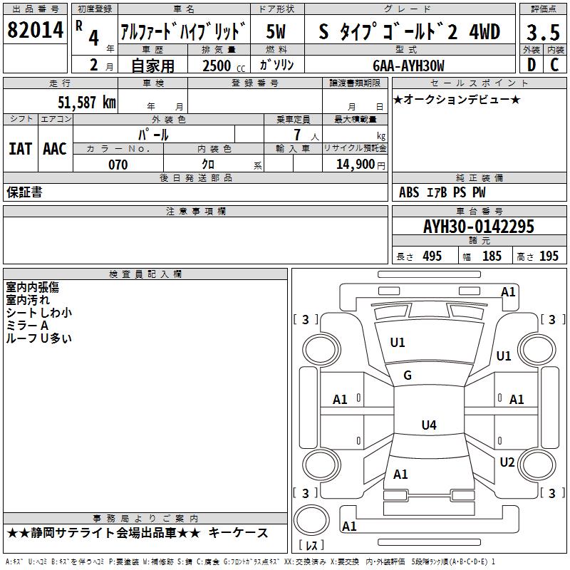 TOYOTA ALPHARD HYBRID S TYPE GOLD 2 4WD - лот 82014