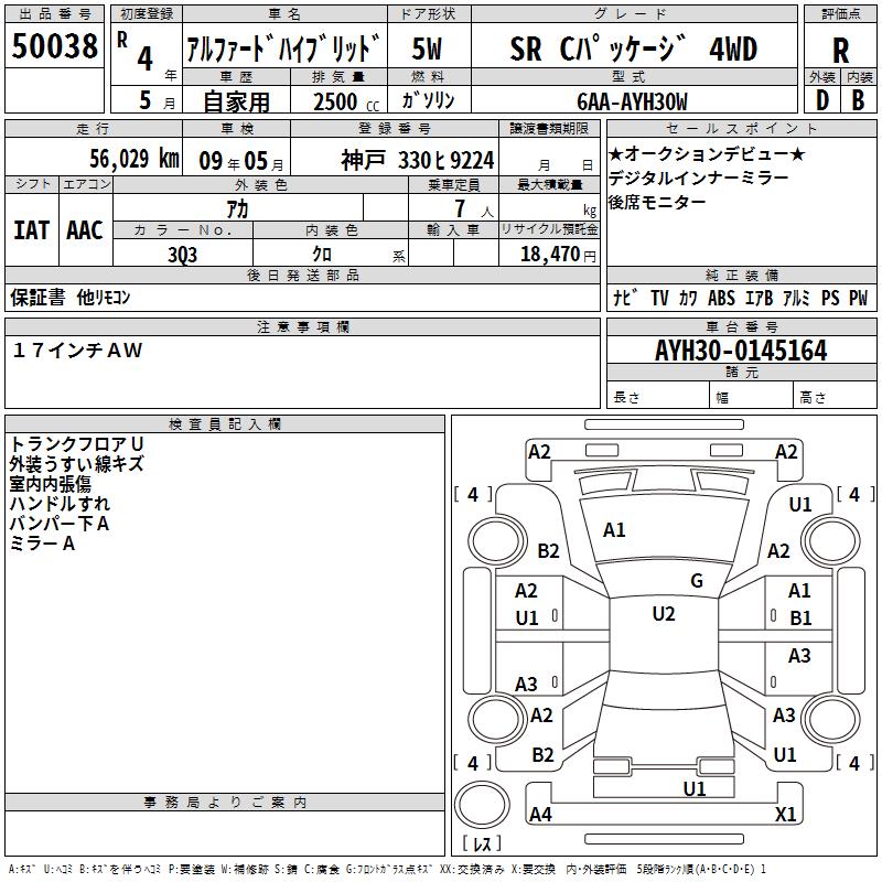 TOYOTA ALPHARD HYBRID SR C PACKAGE 4WD - лот 50038
