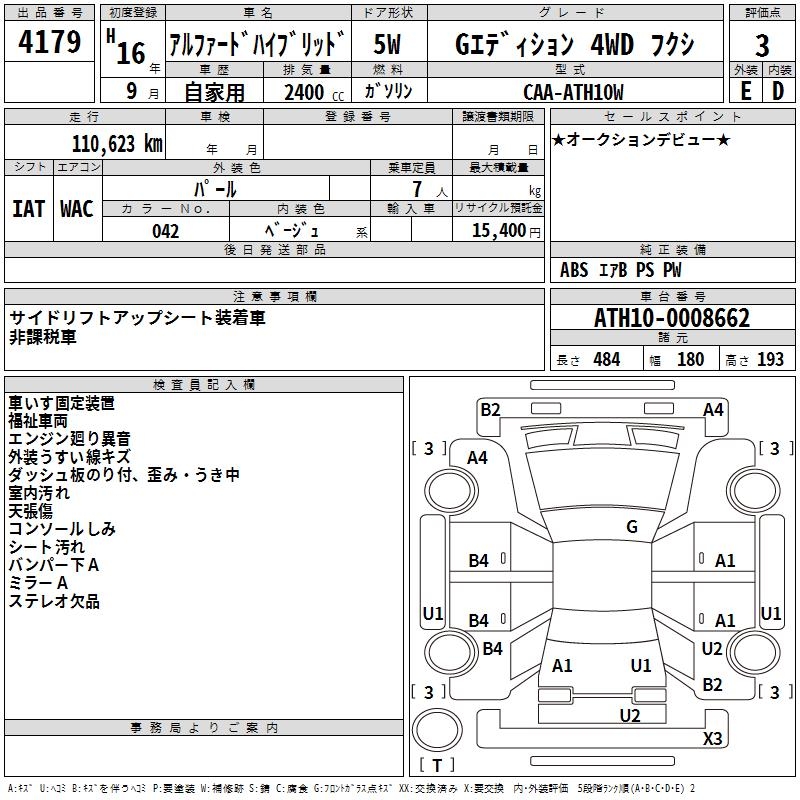 TOYOTA ALPHARD HYBRID G EDITION 4WD WELLFARE - лот 4179